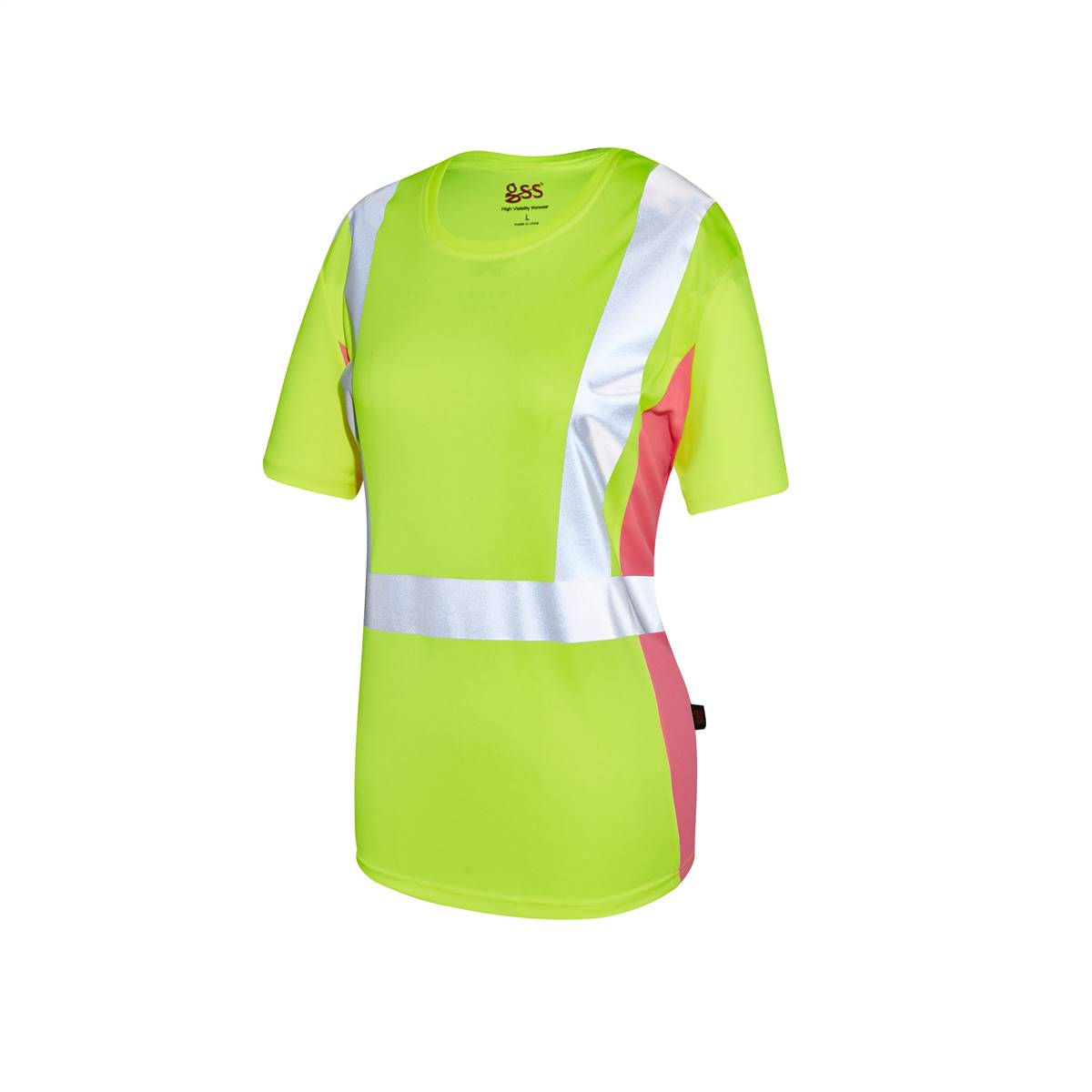 GSS Safety 5125 Class 2 Women’s Short Sleeve T-shirt Lime with Pink Side